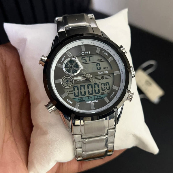Elevate your wrist game with the TOMI T-1942, a commanding timepiece that blends classic analogue charm with modern digital precision. Crafted for those who demand both style and functionality, this dual-time watch ensures you stay ahead—across time zones, occasions, and every challenge in between.